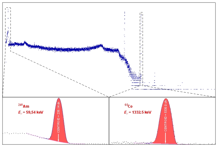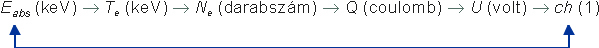 A g -spektrometria folyamán a g -sugárzás által a detektorban leadott Eabs energiára utaló, ún. spektrometriai információt a töltött részecskék Te energiája, majd a szabad töltéshordozók Ne száma, illetve Q össztöltése, majd a kialakított és késõbbiekben megformált és felerõsített feszültségimpulzus U amplitúdója, végezetül pedig az amplitúdónak megfelelõ csatornaszám fejezi ki. Energiakalibrációval közvetlen összefüggést határozunk meg a folyamat két végpontjában szereplõ Eabs és ch mennyiségek között.