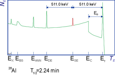 Az egyes összetevõk relatív aránya a detektor jellemzõitõl (anyag, méret, konfiguráció), a g -sugárzástól (energia, kollimáltság), a sugárforrástól (alak, anyag, távolság), és a detektor környezetétõl (árnyékolás, háttér, zaj) függ. A spektrum összetevõi együttesen alkotják a teljes, elméleti g -spektrumot, ami egyébként Monte Carlo szimulációval kiszámítható rendkívüli számítási igények kielégítésével. Valós méréseknél az összetevõk kissé kiszélesednek vagy elmosódnak.